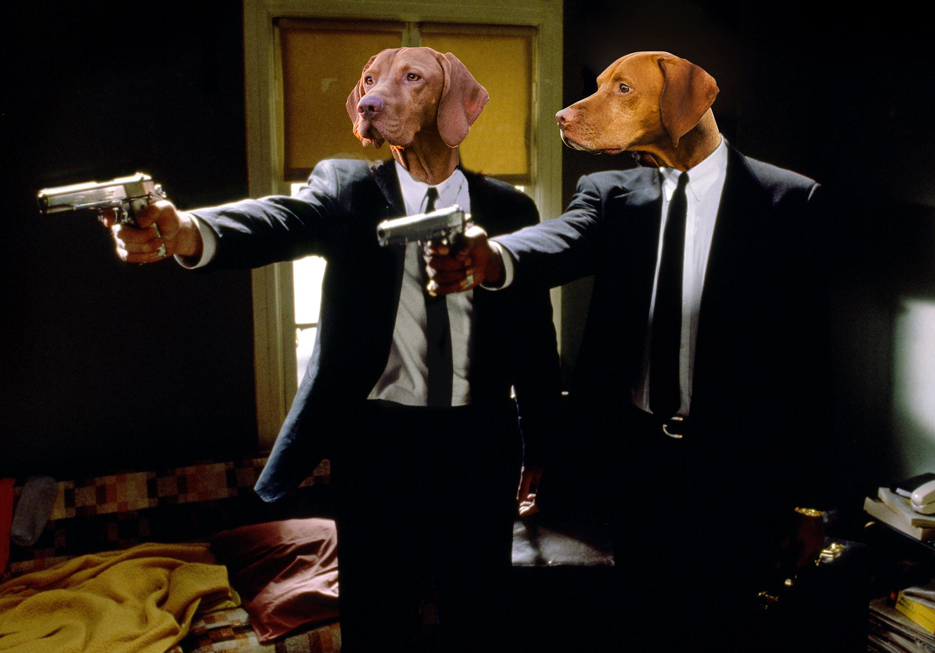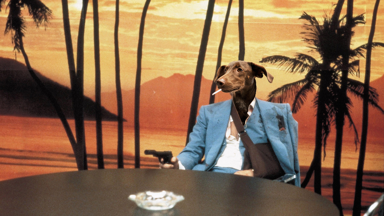 « Pupp’ Fiction », 2023, 50 x 70 cm, Collage, Offset Print (15 Copies), Part of the « Pawzzle » Series, Parodic Work, Credits: Pulp Fiction, Quentin Tarantino, www.pj-designworks.com/pawzzle / @pauline.joerger